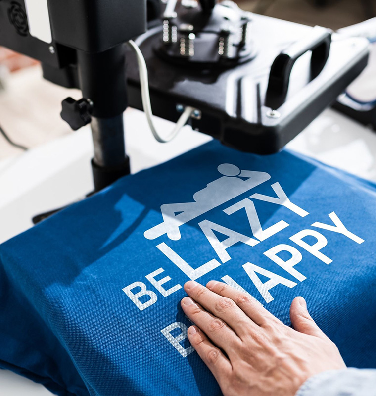 • Impression numérique CMYK sur rouleau de papier haute qualité • Application couche blanche sur zones colorées pour opacité maximale • Ajout de colle spécialisée pour adhésion parfaite • Transfert thermique avec pression, temps et température contrôlés • Fixation permanente sur l'article final
